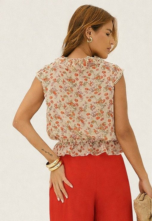 Blusa Mariana é perfeita para quem ama delicadeza e sofisticação em uma única peça. Confeccionada em poliéster leve e fluido, possui caimento suave e detalhes que fazem toda a diferença: babados no decote, amarração frontal e acabamento franzido na barra, que garante um visual romântico e elegante.