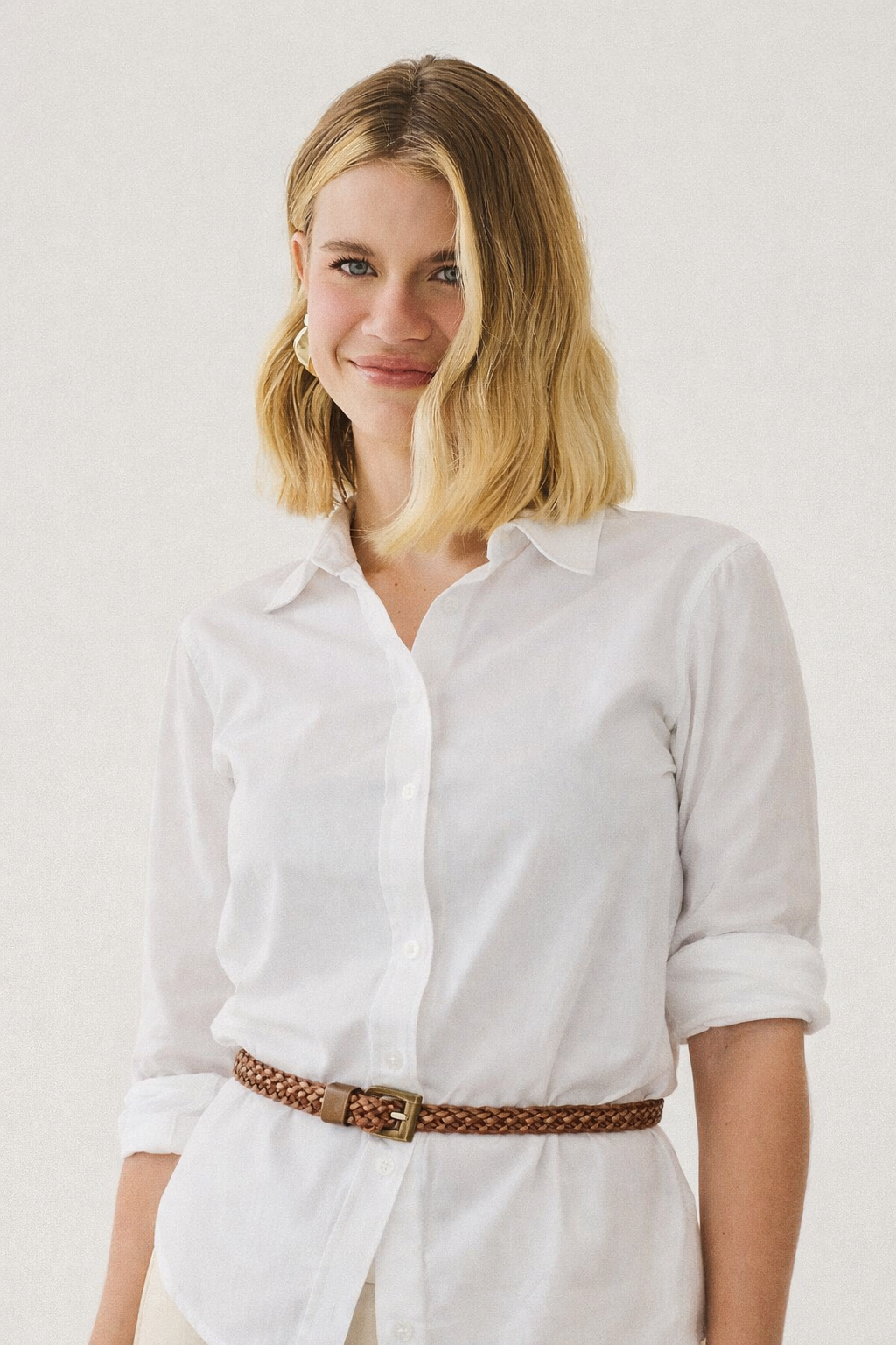 A Camisa Bianca é uma peça clássica e atemporal, com modelagem elegante que valoriza qualquer produção. Seu caimento leve e acabamento impecável garantem conforto e sofisticação, enquanto o design clean permite combinações versáteis do trabalho ao casual chic. Composição 85% Viscose, 10% Linho e 5% Algodão