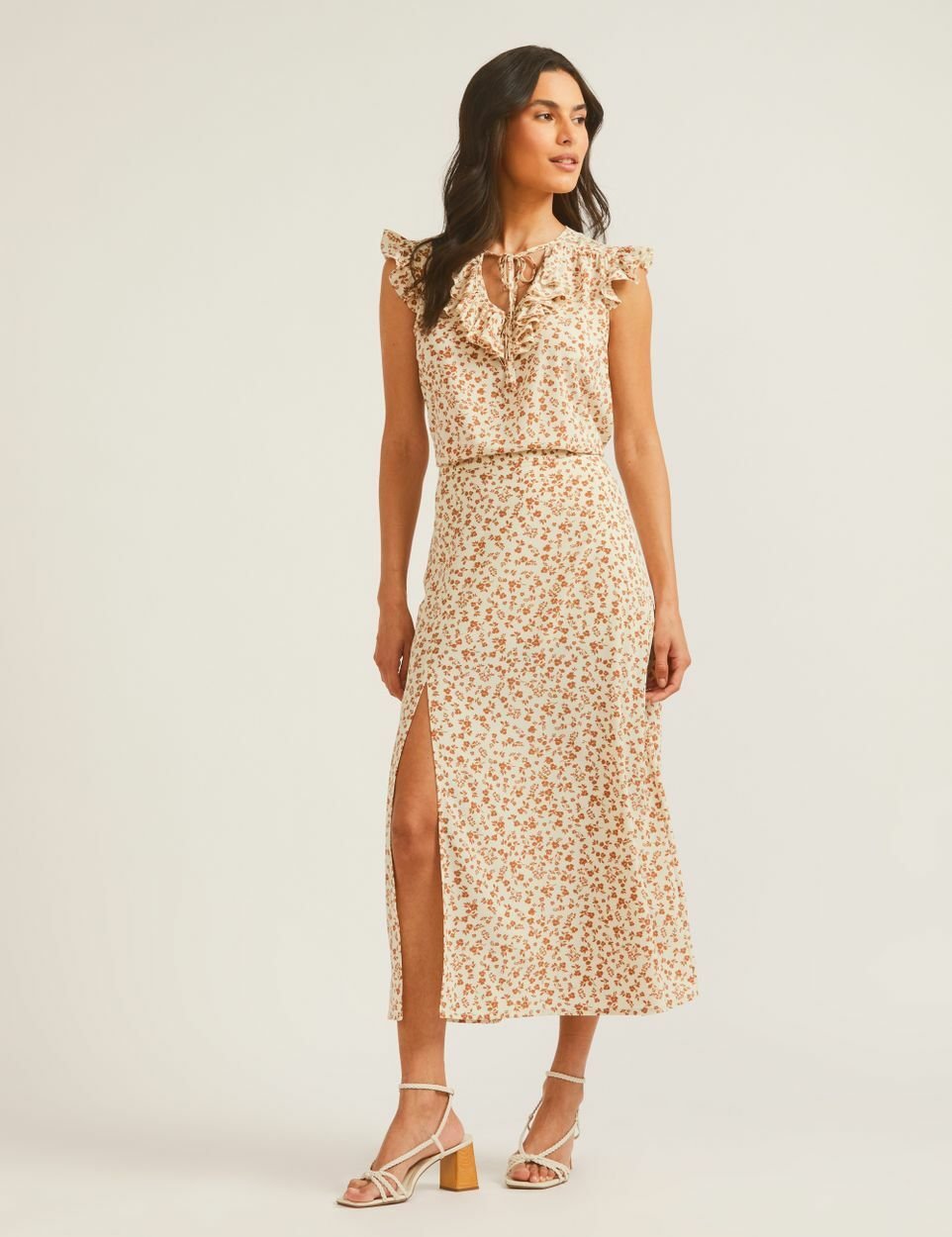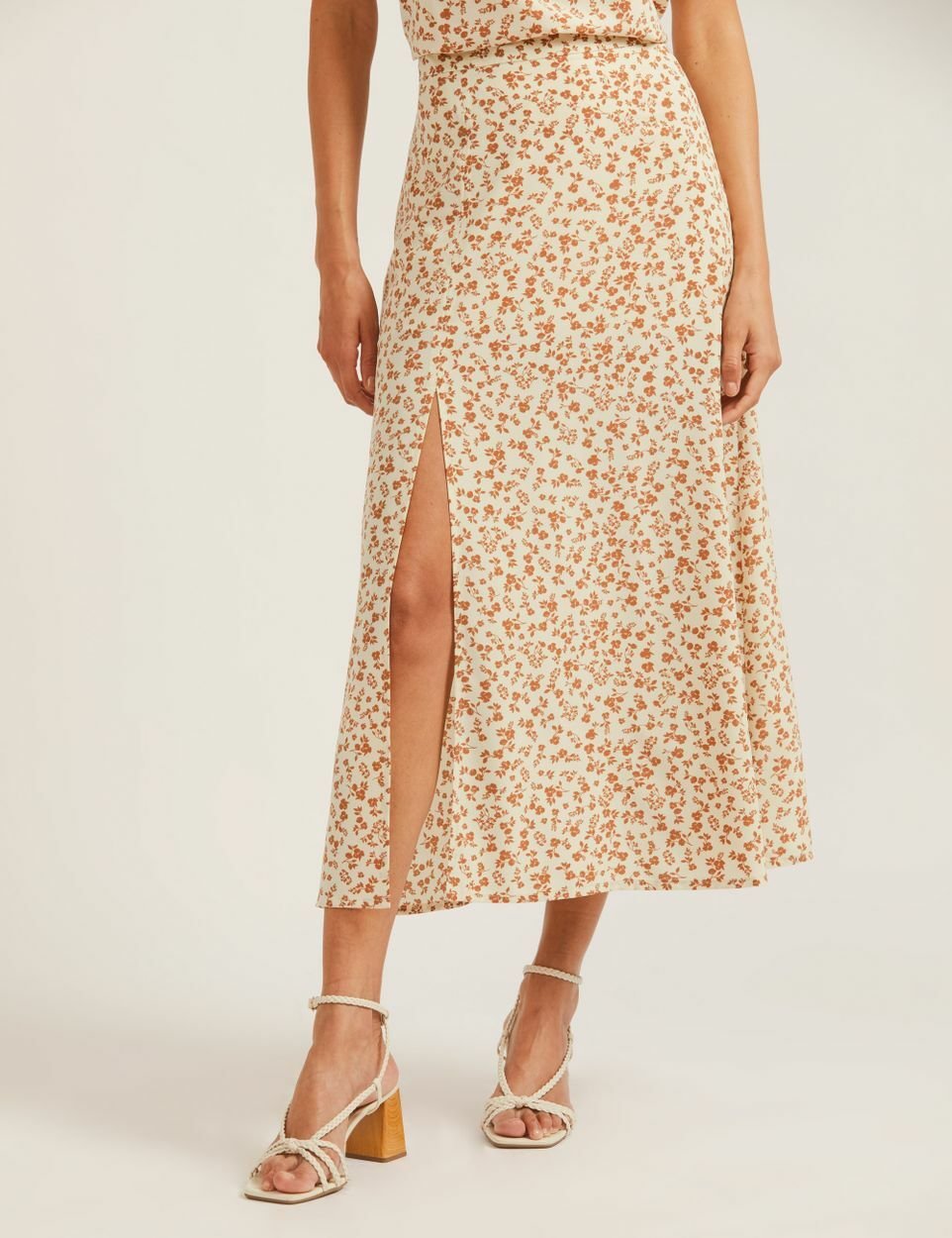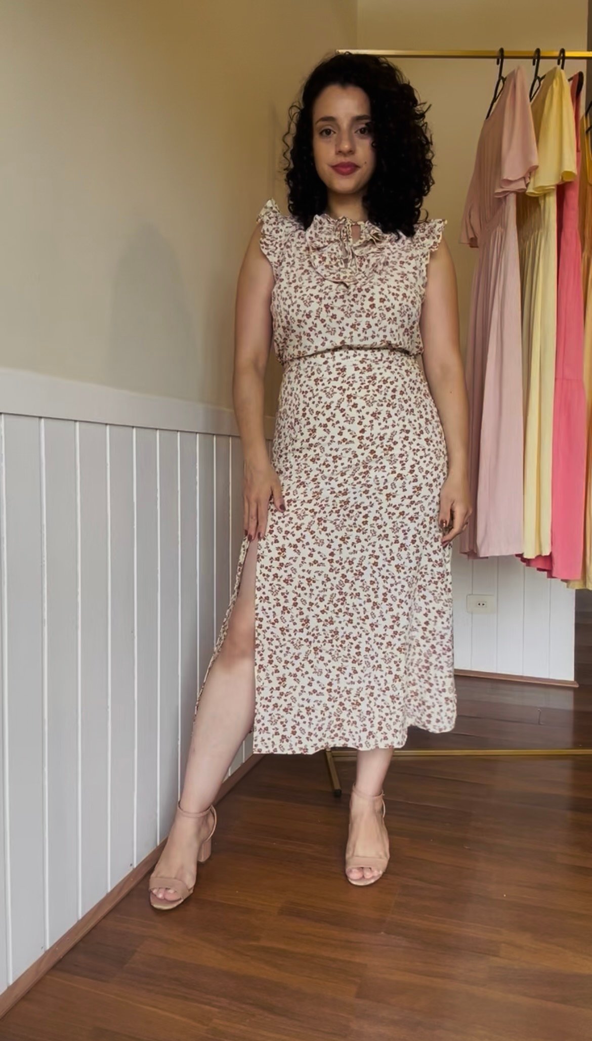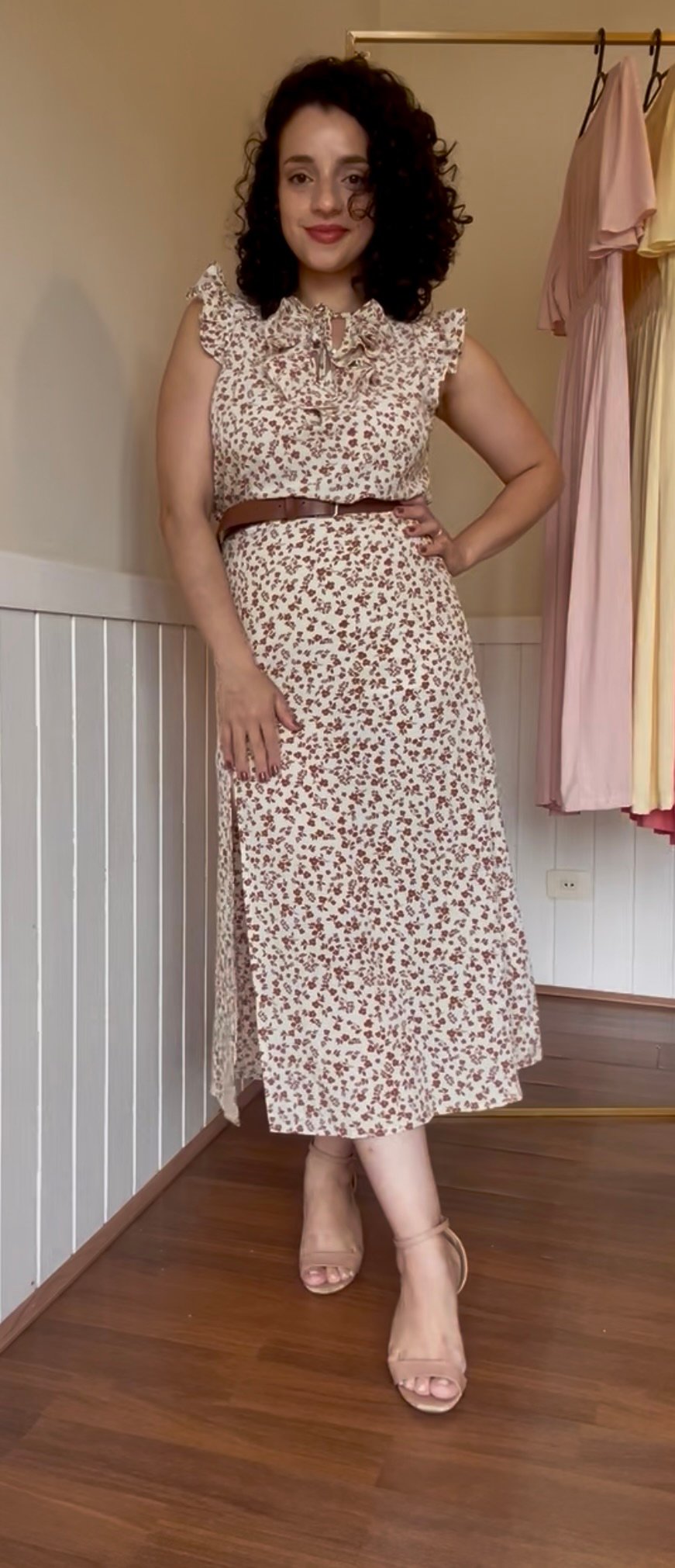 A Saia Fiore é confeccionada em poliéster leve, com estampa delicada de flores pequenas em tons terrosos que trazem charme e feminilidade ao look. Possui caimento fluido e movimento suave, proporcionando conforto e elegância ao mesmo tempo. Versátil e atemporal, é perfeita para compor produções do dia a dia com um toque romântico.