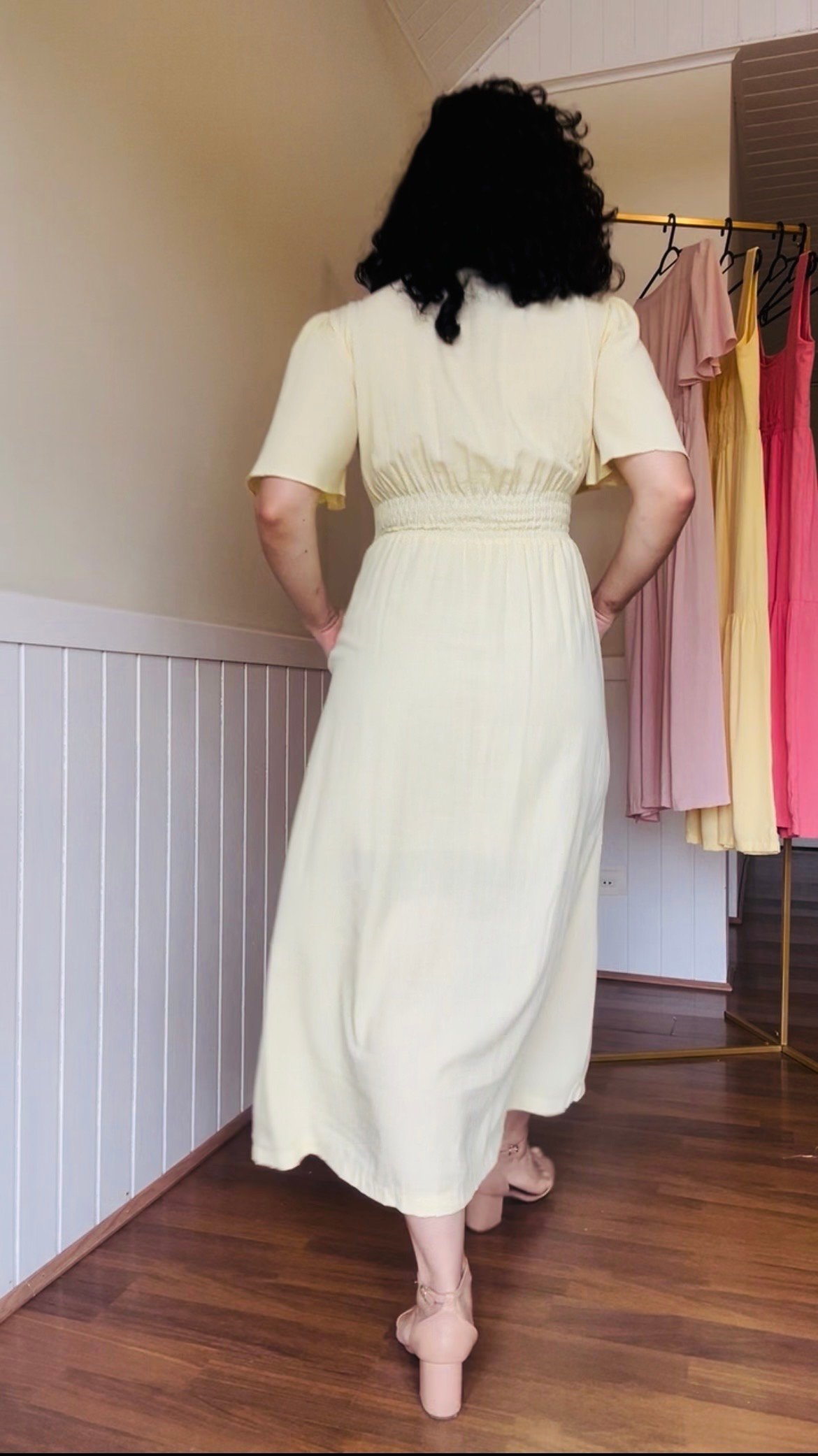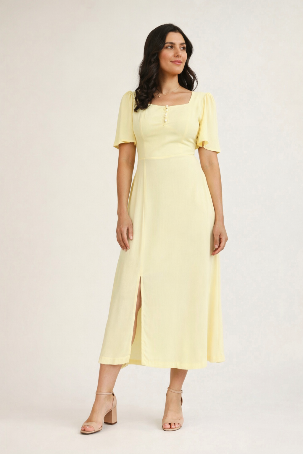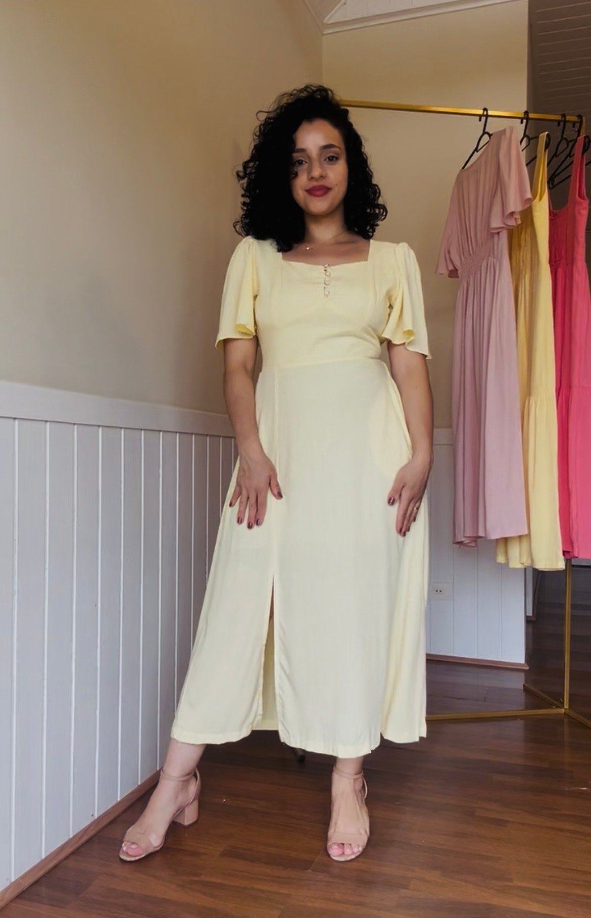 Elegante e leve, o Vestido Serena é confeccionado em viscolinho, garantindo toque macio, caimento fluido e conforto o dia todo. Sua cor manteiga traz delicadeza e sofisticação, perfeito para compor looks minimalistas e atemporais.