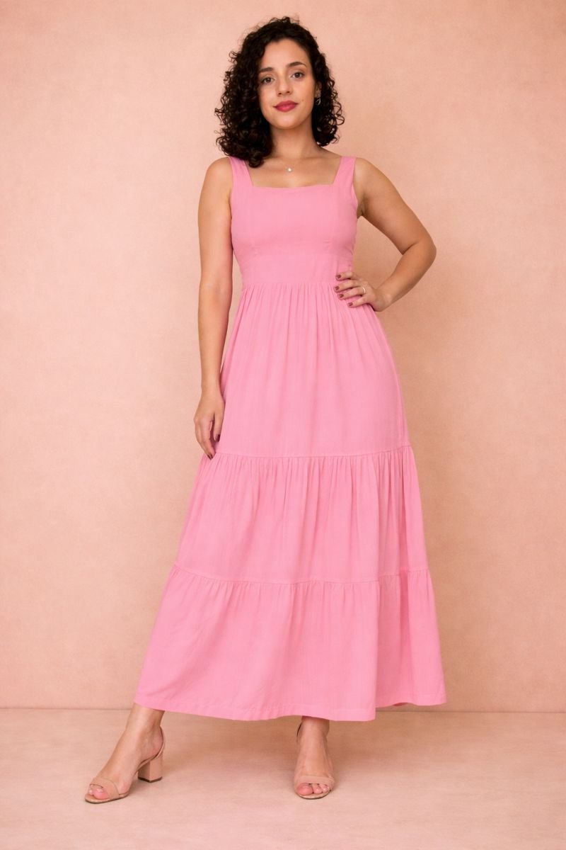 O Vestido Amélia é confeccionado em viscolinho, oferecendo leveza, frescor e um caimento impecável. Com design delicado e atemporal, ele traz um visual elegante e confortável, perfeito para o dia a dia ou ocasiões especiais com um toque de charme. Veste do 38 ao 42