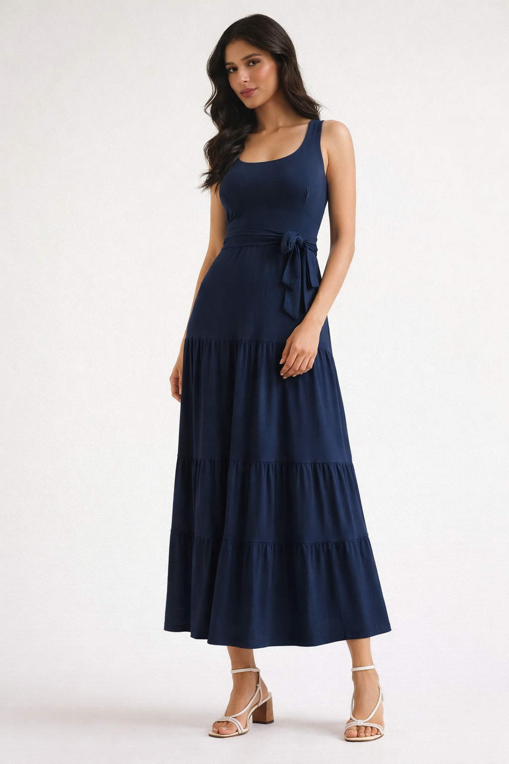 Fluidez e elegância natural, o Celeste é aquele vestido que transmite serenidade e presença. O tom e o laço na cintura deixam o look ainda mais especial. Composição visco lycra 290g.